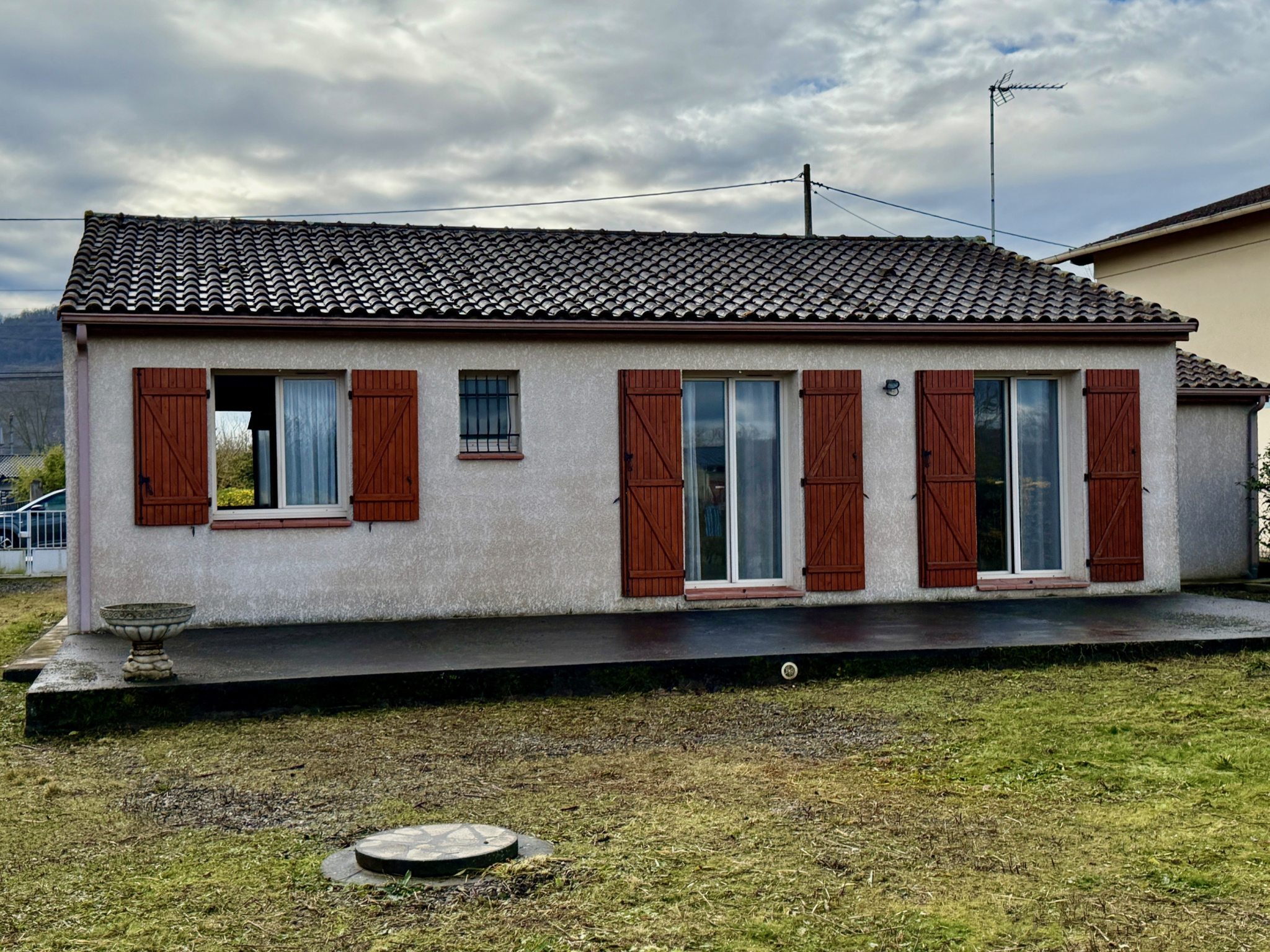 Jolie maison de plain pied construite dansl es années 2000 d'envrion 81 m² habitables comprenant une entrée, une cuisine indépendante et aménagée , un salon / séjour d'environ 27 m² , trois chambres avec parquet au sol, une salle d'eau et wc séparé. La maison dispose d'un garage attenant d'envion 20 m² et d'une petite dépendance. Une belle terrasse sur l'arrière de la maison permet de profiter d'une vue dégagée sur le terrain clos et arboré de 2893 m². Le logement est en bon état général et équipée d'un chauffage central au gaz de ville et de double vitrage. Belle opportunité à venir découvrir sans tarder !!!
